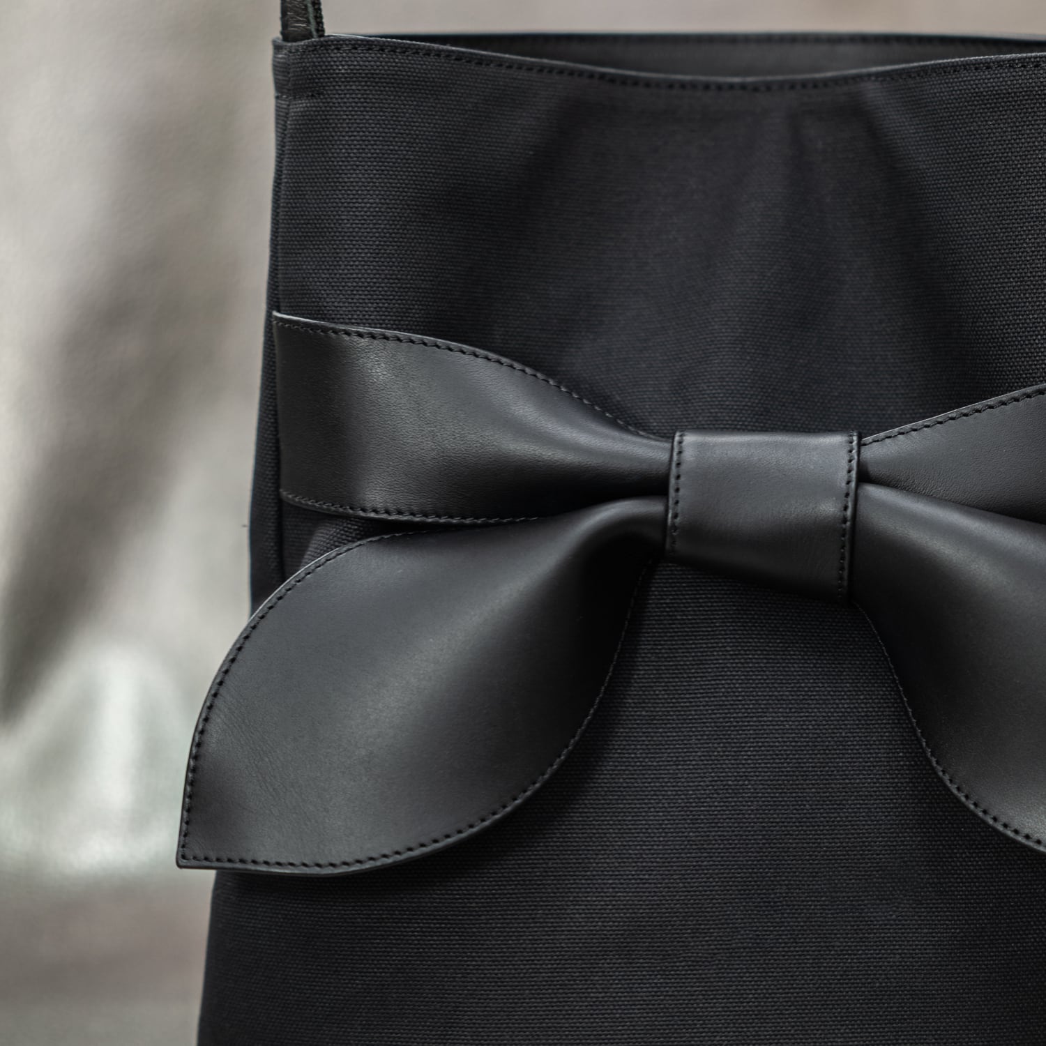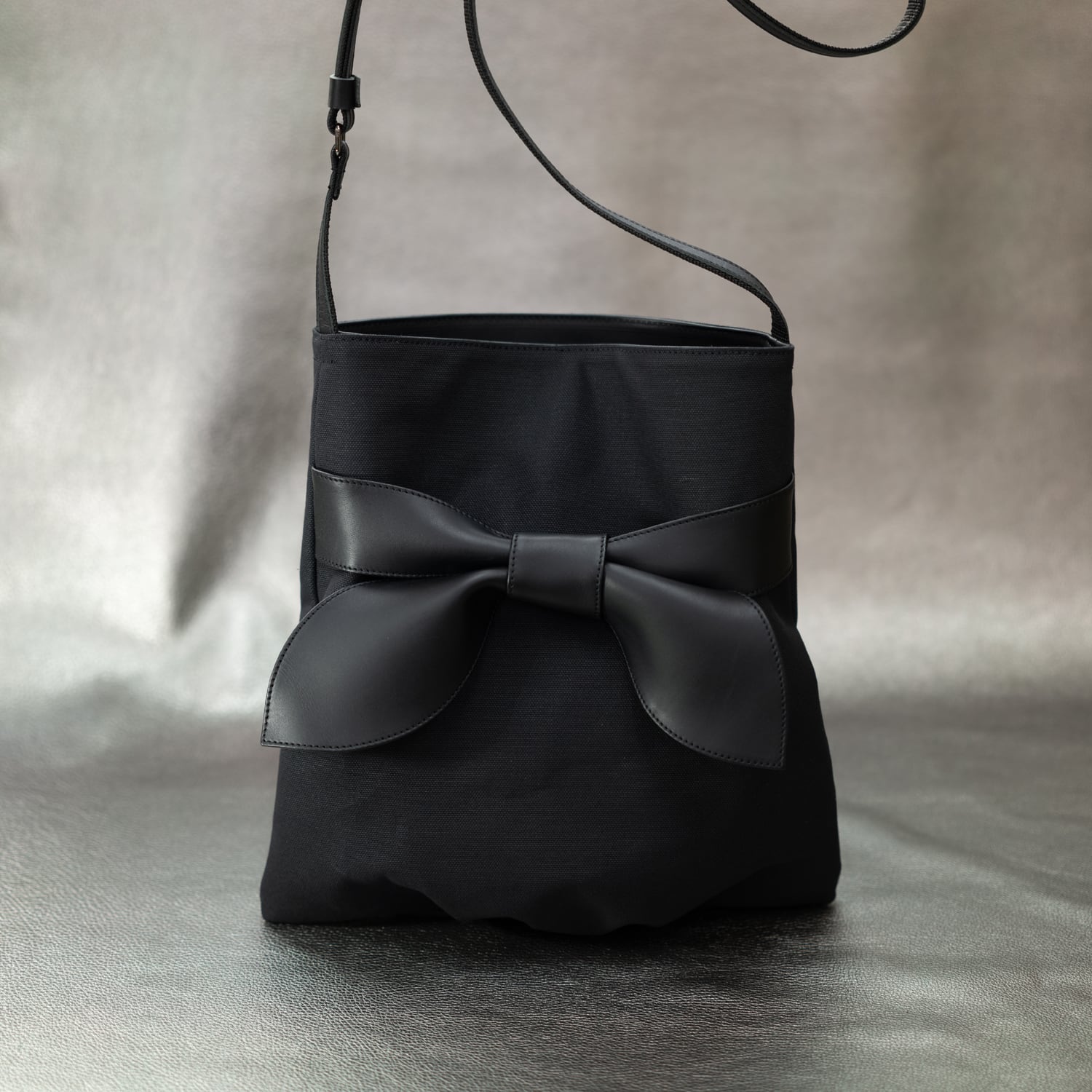 リネン 本革リボン ショルダーバッグ 6号帆布 キャンバス